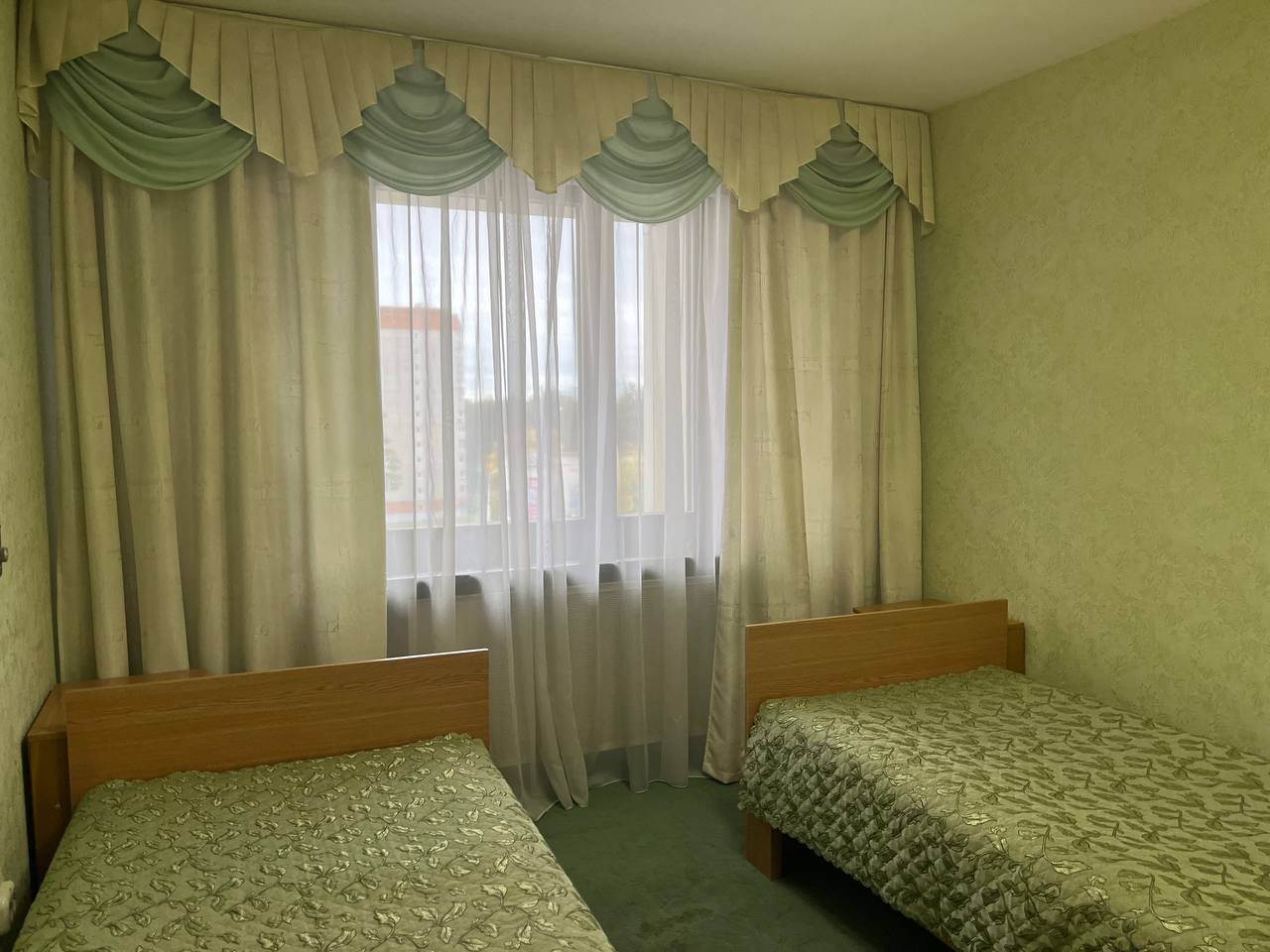 Небольшой однокомнатный номер с двумя раздельными кроватями со стандартной комплектацией, идеальный вариант для размещения туристов и спортсменов.