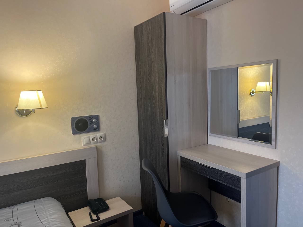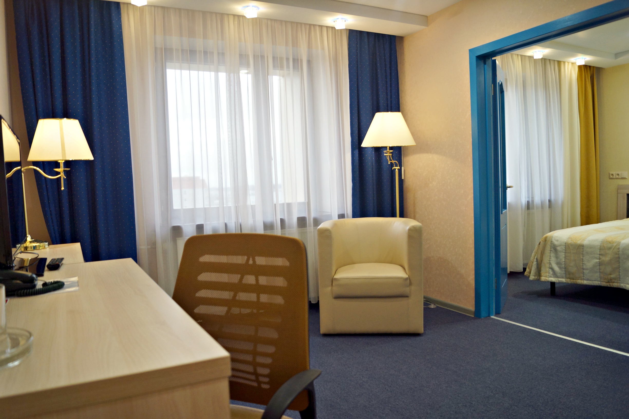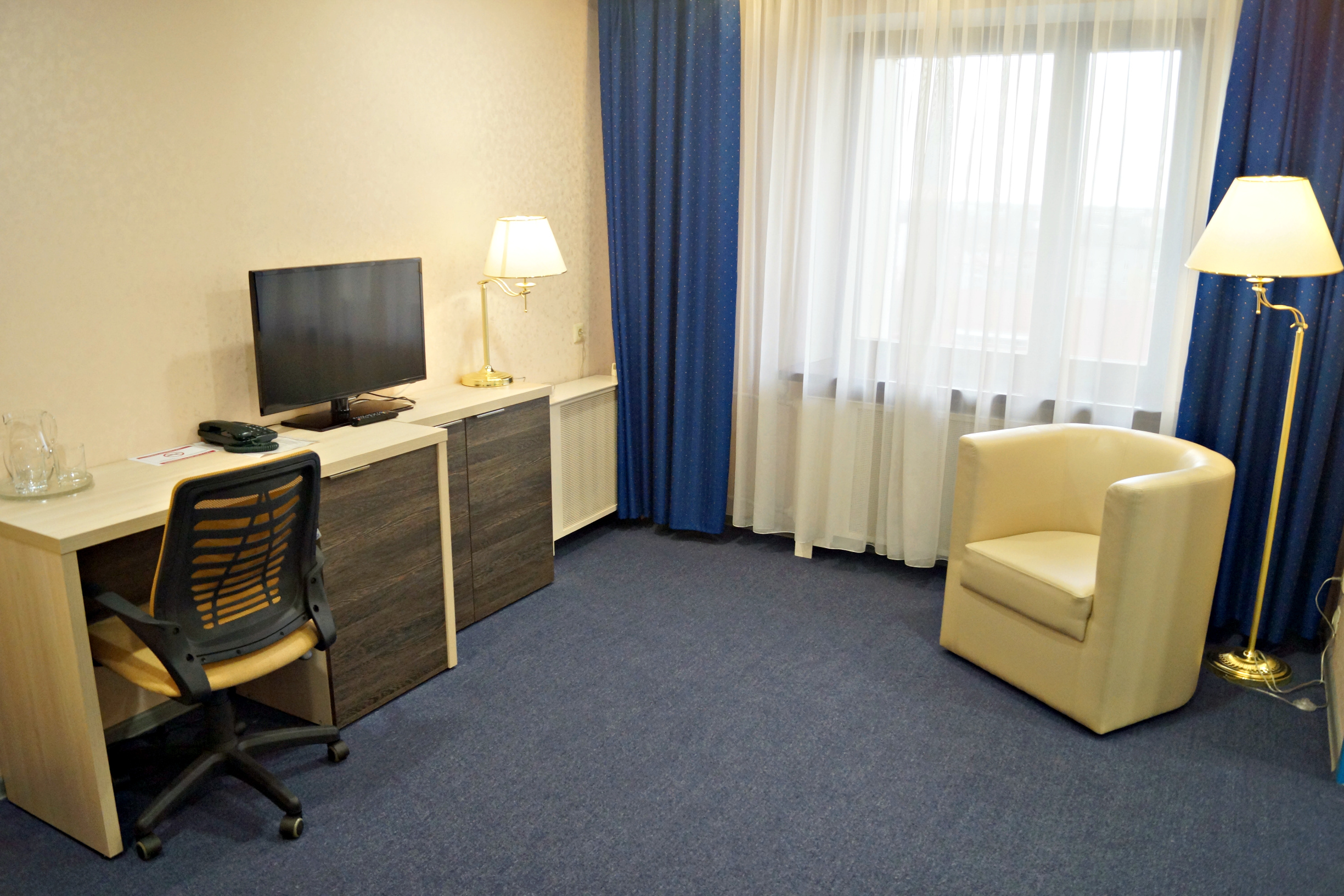 Современный двухкомнатный номер с двуспальной кроватью, включает в себя спальню и гостиную. Номер оборудован удобной и современной мебелью, телевизором с функцией SMART TV, в ванной комнате установлен стационарный фен. Возможно проживание одного или двух человек.